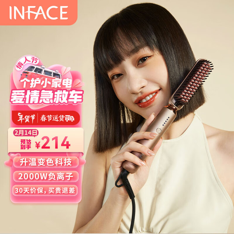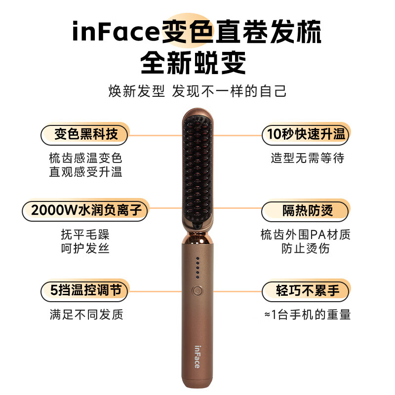 inFace负离子直发梳卷发棒直板夹蓬松夹板棒卷发梳电梳子短发打理卷直两用干湿生日礼物女送老婆送女友价格:289.00元!