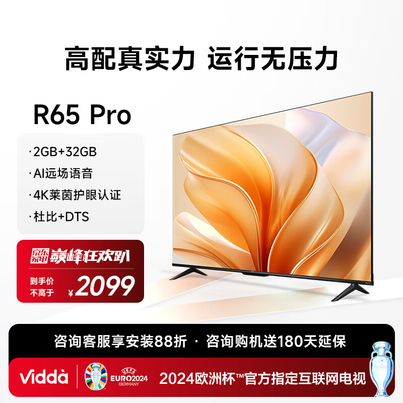 Vidda R65 Pro 海信电视 65英寸 2G+32G 远场语音 超薄屏 智慧屏 游戏液晶电视以旧换新65V1K-R价格:2199.00元!