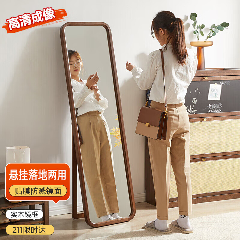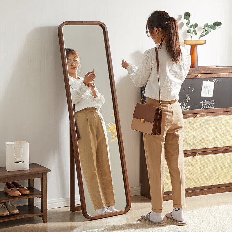 家逸全身镜落地穿衣镜子贴墙实木壁挂试衣镜现代简约化妆镜子价格:321.00元!