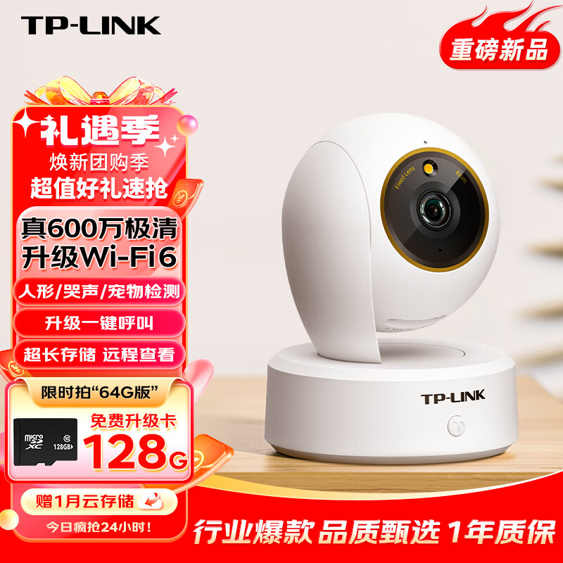 TP-link 600万监控摄像头家用监控器360度无死角带夜视全景无线家庭室内tplink手机远程婴儿看护器宝宝监护器价格:409.00元!