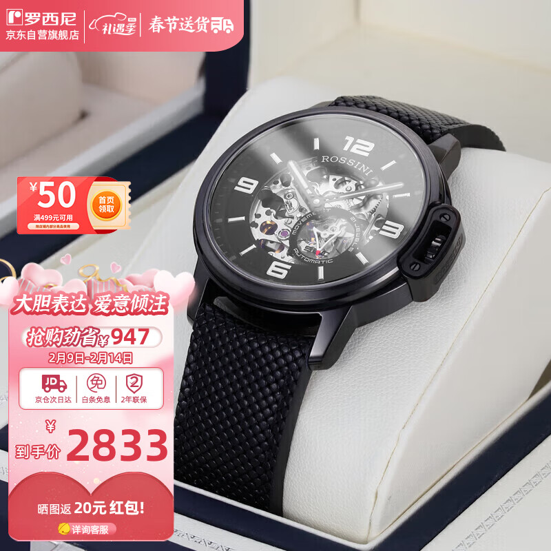 罗西尼(ROSSINI)手表男自动机械表黑盘皮带礼物送男友国表百搭商务镂空 5793价格:3116.20元!
