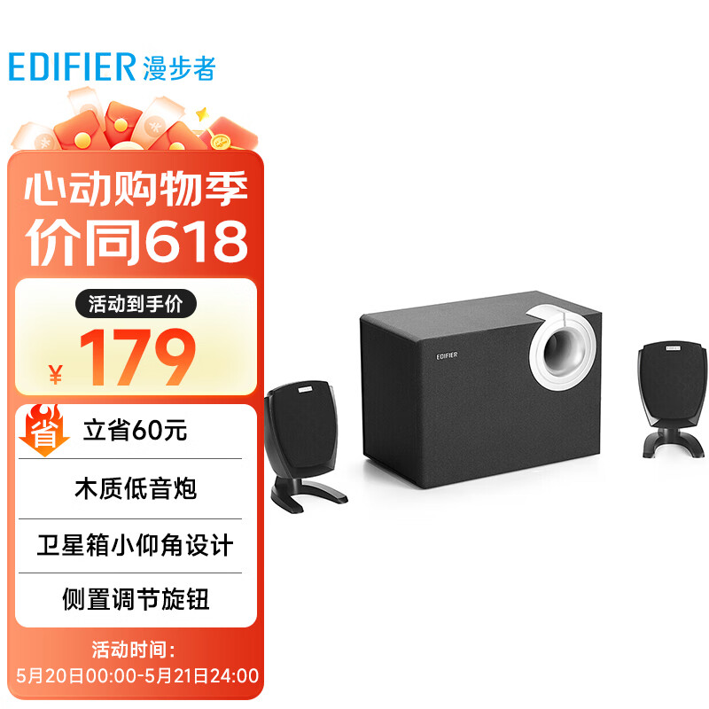 漫步者(EDIFIER) R201T06 2.1声道电脑音响音箱 台式机笔记本桌面音响 游戏音响 黑色价格:209.00元!