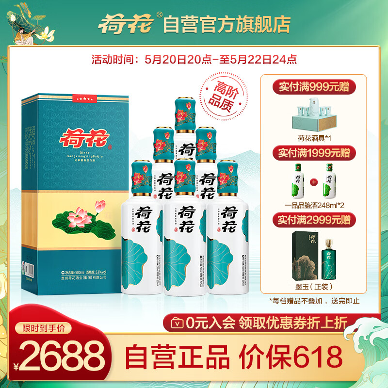 荷花上品荷花 酱香型白酒53度500ml*6瓶 整箱装 纯粮酿造 大曲坤沙价格:3162.00元!