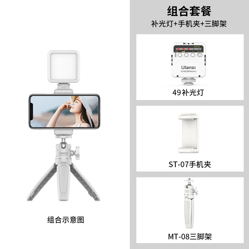 商品名称:ulanziMT-08三脚架手机夹补光灯套装(白)