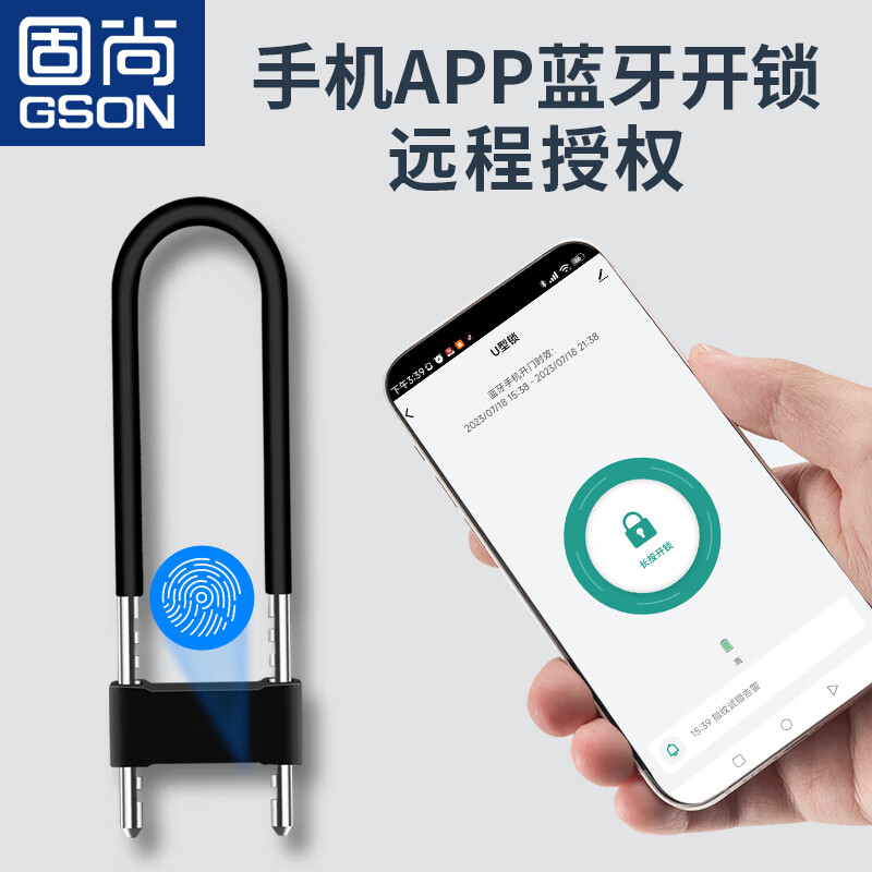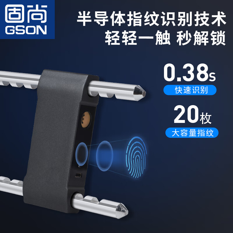 固尚(GSON)指纹u型锁玻璃门智能锁公司办公室双开门商铺U型电子插锁价格:260.00元!