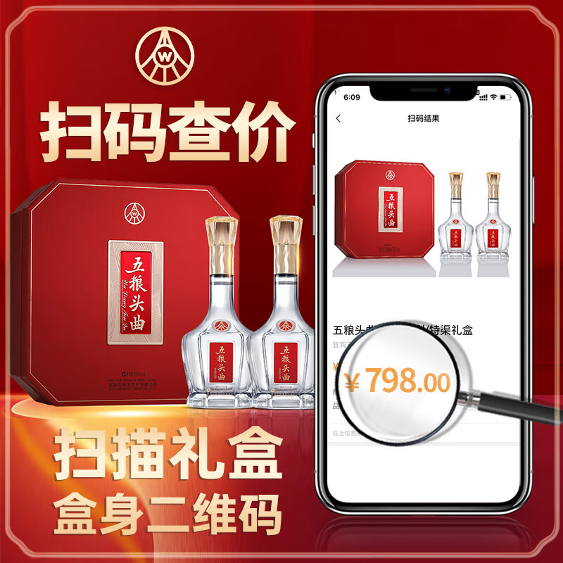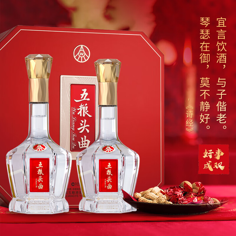 五粮液 五粮头曲 八方来财 浓香型白酒52度500ml*2瓶礼盒装端午节送礼价格:398.90元!