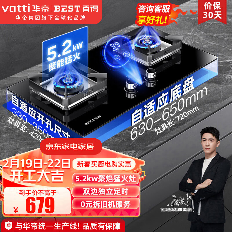 百得(BEST)华帝出品 燃气灶 煤气灶双灶 5.2KW超燃大火力天然气灶具 台式嵌入式两用 智能定时灶 JZT-QE55价格:779.00元!