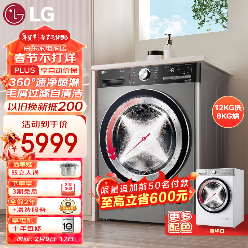 LG小旋风系列 12kg超薄洗烘一体机家用 直驱变频 旋风速净洗 洗净比1.1 360°速净喷淋 FCW12D4PA 银价格:6599.00元!