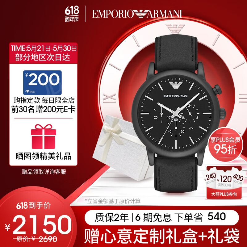 安普里奥·阿玛尼(Emporio Armani)手表男士黑武士系列三眼皮带石英男表送男友520情人节礼物AR1970价格:2550.00元!