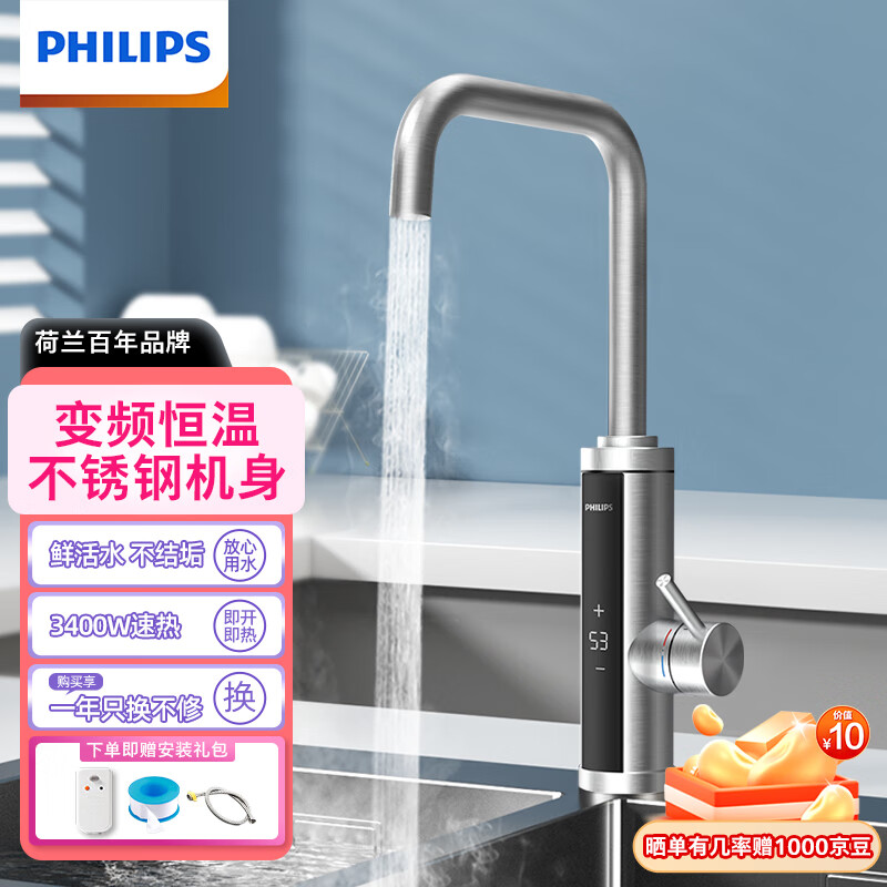 飞利浦(PHILIPS)电热水龙头 变频恒温不锈钢速热水龙头即热式小厨宝速热快速加热电热水器AWH1040SS/93价格:349.00元!