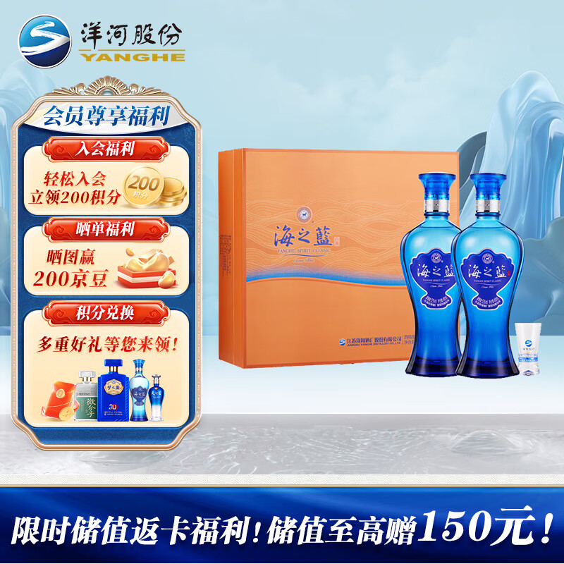 洋河 蓝色经典 海之蓝 52度 480ml*2瓶 礼盒装 绵柔浓香型 送礼价格:378.00元!