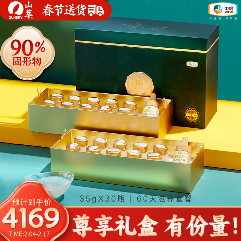 中粮山萃即食燕窝【年货送礼礼盒】无加糖燕窝孕妇滋补品营养品月子礼物35g*30瓶礼品送礼长辈父母家长价格:5533.00元!