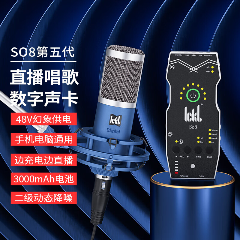 Ickb so8第五代声卡+米尼麦克风套装手机电脑抖音主播唱歌k歌录音直播设备全套电容快手话筒价格:1618.00元!