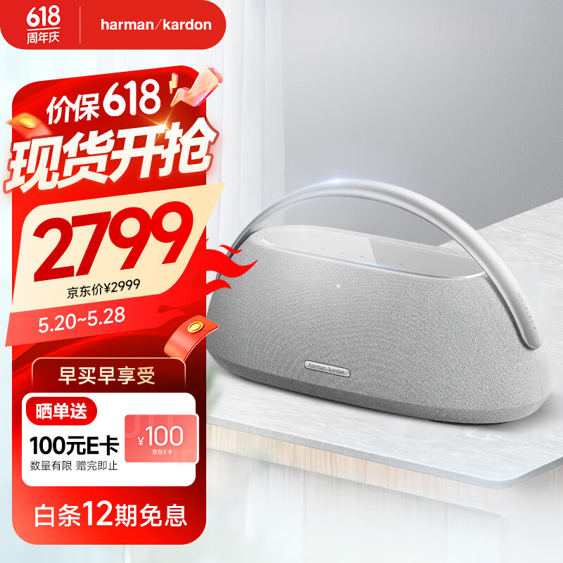 哈曼卡顿 GO+PLAY 3 边走边唱三代户外音响 便携蓝牙音箱 三分频设计 160W大功率 家用影院音响 银色价格:2799.00元!