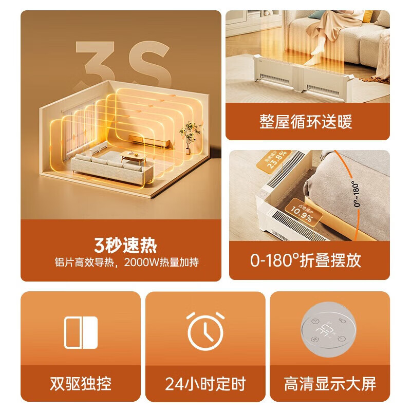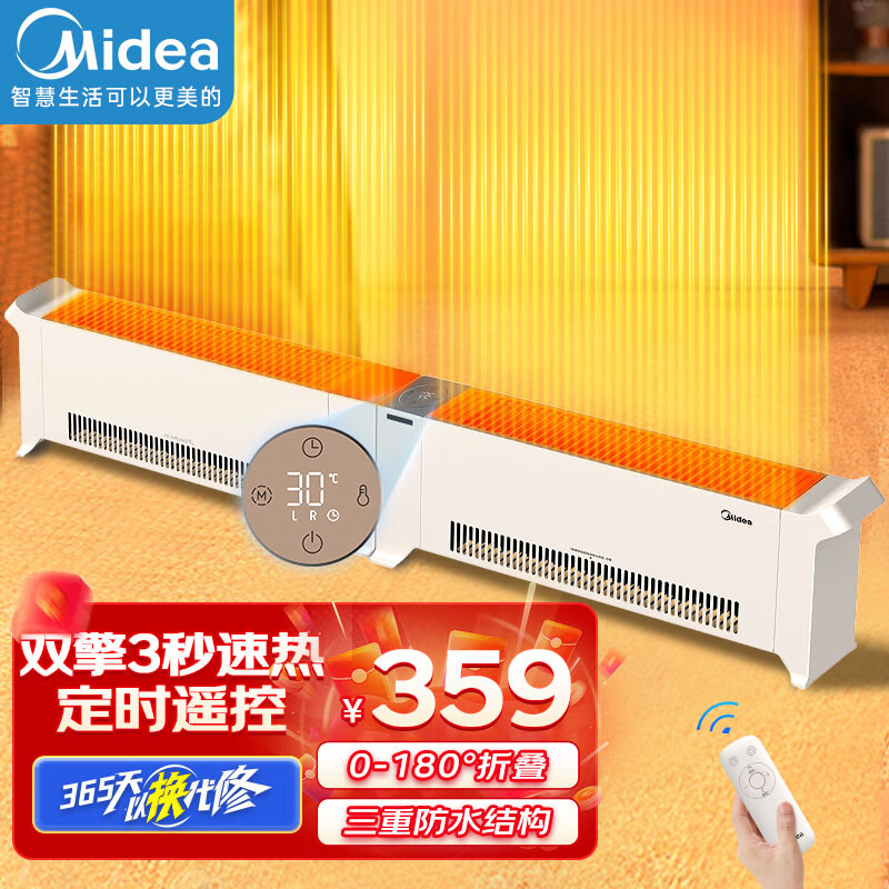 美的(Midea)石墨烯踢脚线取暖器大面积电热电暖气家用防水浴室电暖器节能移动地暖客厅遥控智能暖风机 【双驱速热 防尘防水】遥控定时价格:429.00元!