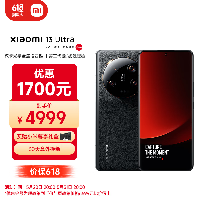 小米(MI)13Ultra 徕卡光学全焦段四摄 第二代骁龙8处理器 2K超色准屏 16+1TB 黑色 AI手机 5G手机价格:4999.00元!