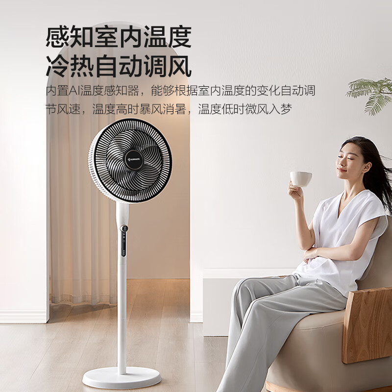 艾美特(AIRMATE)【强劲海洋风】七叶大风量遥控落地扇AI智能感温柔风电风扇节能轻音台立式摇头循环空气风扇 R75价格:299.00元!