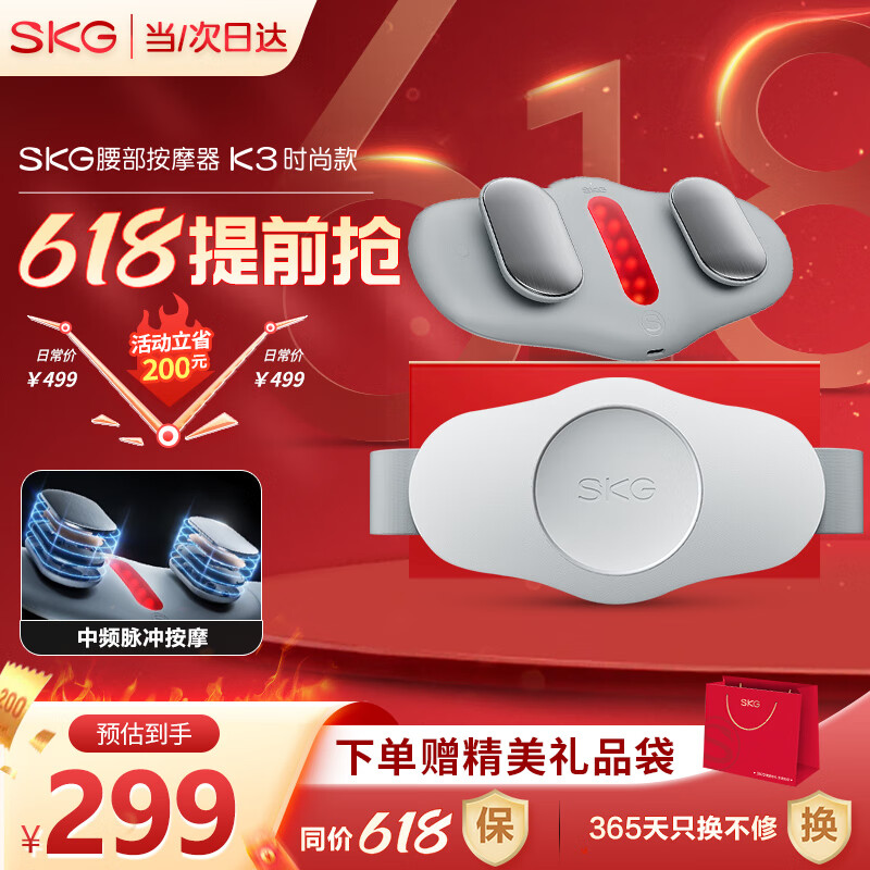 SKG腰部按摩器腰带腰椎智能腹部红光热灸热敷便携按摩仪 母亲节520礼物实用送妈妈送男女友生日礼品 【经典-时尚款】双区按摩+红外热敷价格:499.00元!