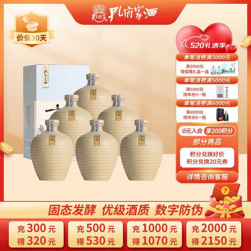 孔府家 亦陶6 浓香型白酒 52度 500ml*6瓶 整箱装 宴会送礼 山东名酒价格:359.00元!