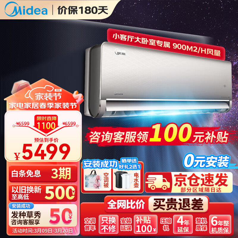 美的(Midea)空调 2匹旋耀 壁挂式空调 大风量客厅商铺挂机 一级能效空调 KFR-50GW/N8MXA1价格:5499.00元!