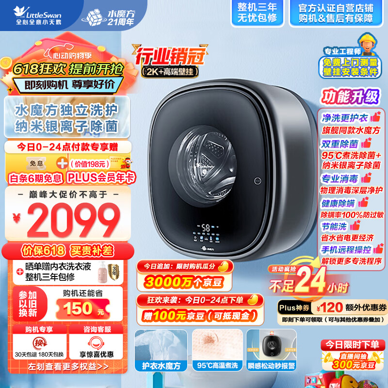 小天鹅(LittleSwan)壁挂洗衣机TG30V860EPRO 小海绵 3KG迷你滚筒洗衣机全自动 儿童婴儿洗衣机小型 挂壁式 水魔方价格:2099.00元!