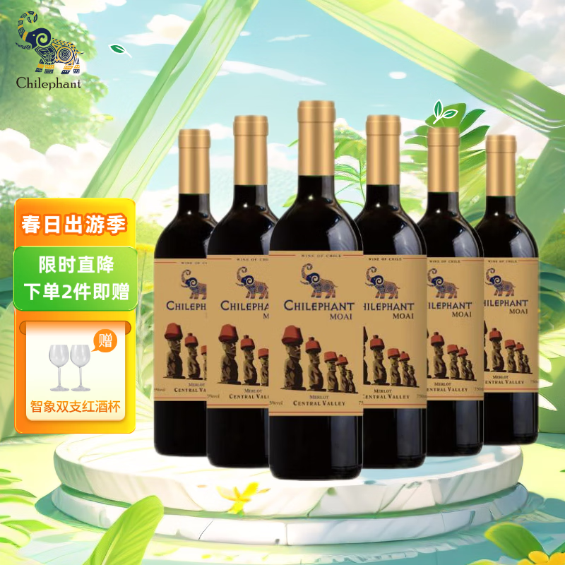 智象摩艾美露干红葡萄酒750ml*6整箱红酒 智利进口红酒价格:128.00元!