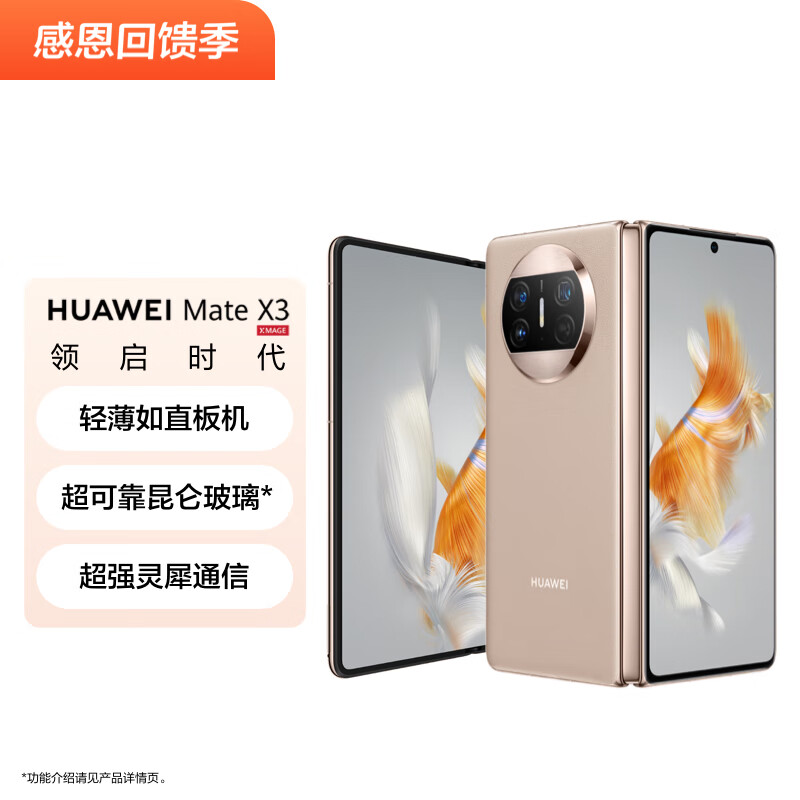 华为/HUAWEI Mate X3 折叠屏手机 超轻薄 超可靠昆仑玻璃 灵犀通信 1TB 晨曦金 典藏版 鸿蒙旗舰价格:15999.00元!