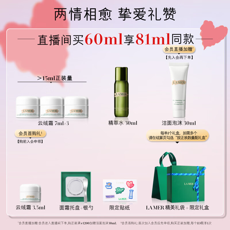 海蓝之谜(LA MER)愈龄云绒霜60ml紧致面霜护肤品套装化妆品情人节礼盒生日礼物女价格:3080.00元!