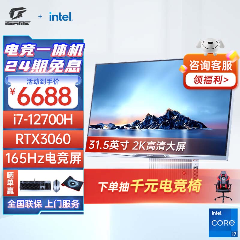 七彩虹(Colorful)G-ONE Plus悦享版31.5英寸电竞台式一体机游戏电脑整机(I7-12700H RTX3060 16G 512G)价格:6688.00元!
