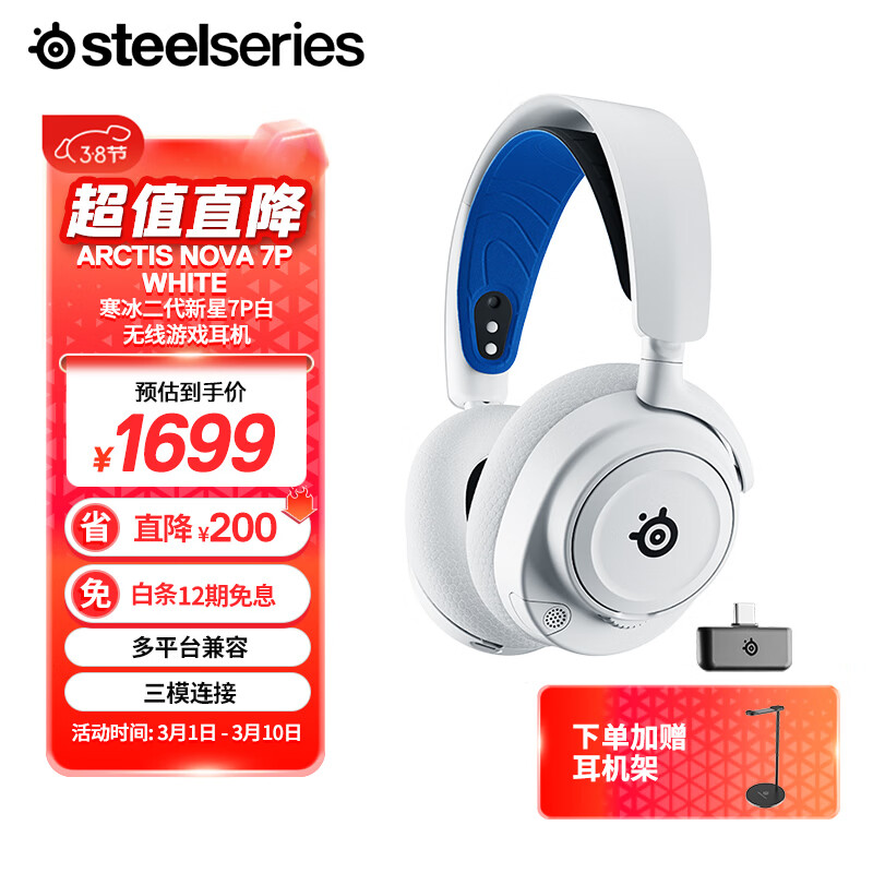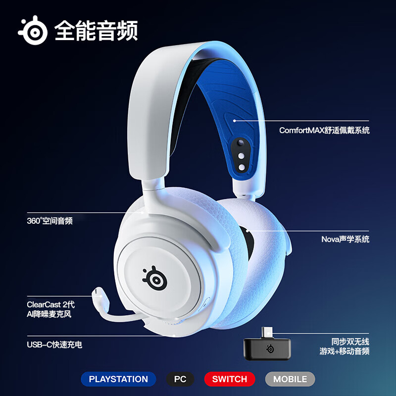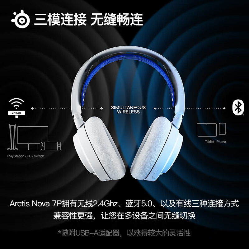 赛睿(SteelSeries)寒冰新星 Arctis Nova7P白色 兼容PS5 无线电脑电竞头戴式游戏耳机降噪蓝牙三模连接价格:1699.00元!