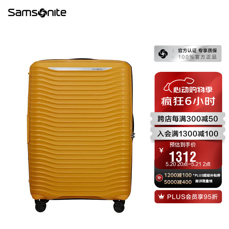 新秀丽(Samsonite)行李箱明星同款大波浪箱拉杆箱登机箱20英寸黄色KJ1*06001价格:1662.00元!