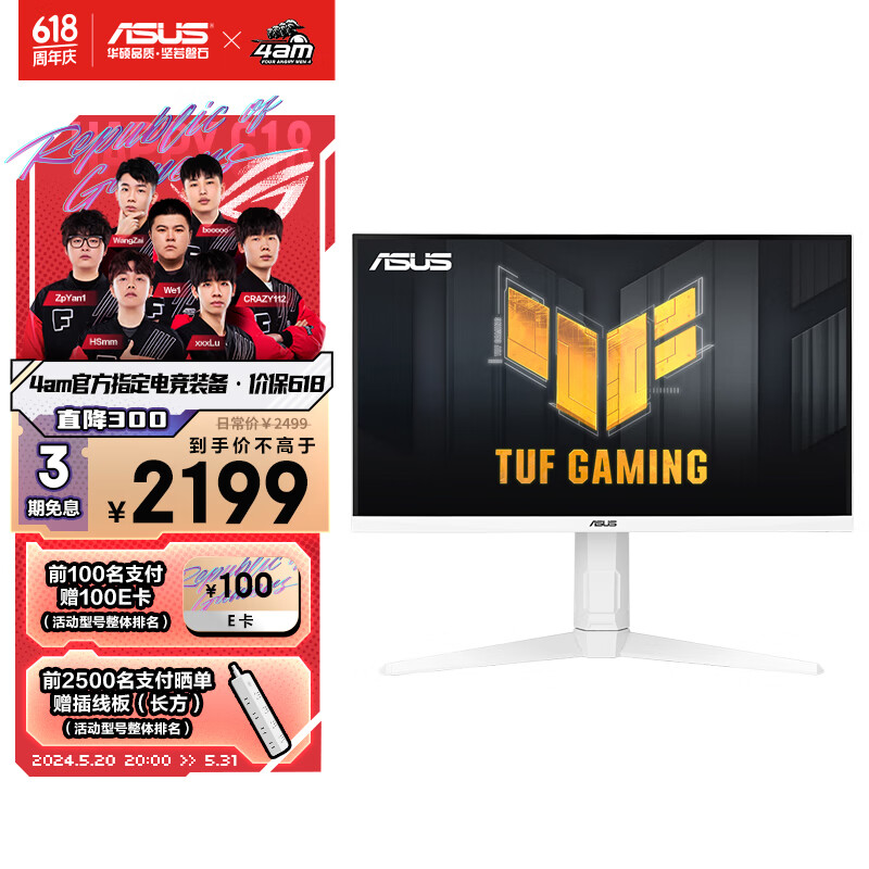 华硕VG27AQML1A-W 27英寸游戏2K显示器FastIPS超频260Hz G-sync兼容1ms响应(GTG)HDR400旋转升降音响价格:2499.00元!