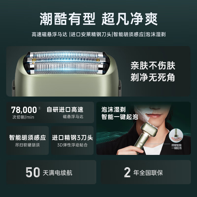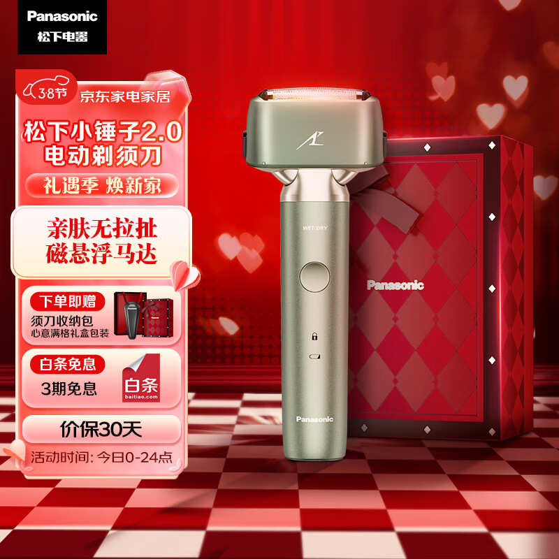 松下(Panasonic)小锤子2.0剃须刀刮胡刀电动往复式磁悬浮马达进口三刀头生日礼物男士新年礼物情人节送男友JLM3C绿价格:549.00元!