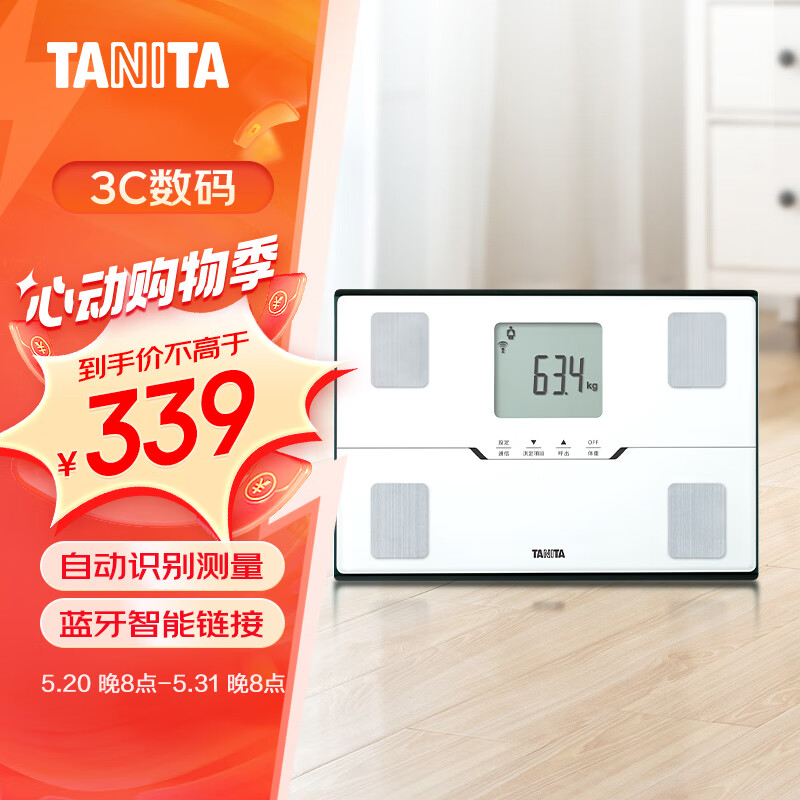 百利达(TANITA)BC-401S四电级家用智能体脂秤 日本品牌蓝牙电子健康体重秤 白色价格:499.00元!