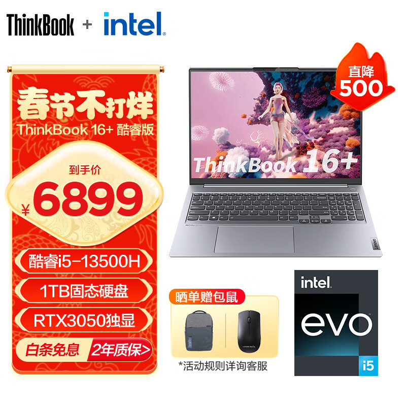 ThinkPad 联想ThinkBook 16+ 13代英特尔Evo酷睿标压处理器 16英寸轻薄笔记本电脑 2.5K 【升级】i5-13500H 16G 独显 0HCD价格:7399.00元!