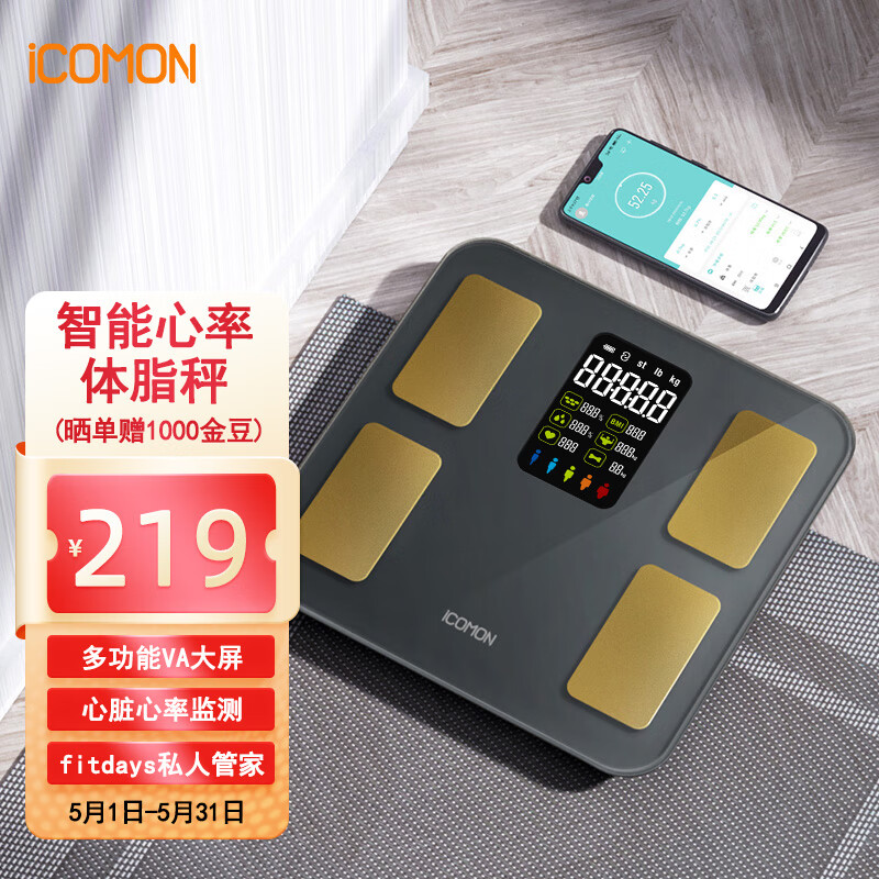沃莱(ICOMON)体脂秤智能心率电子体重秤全家人体用APP自测数据健康检测体测仪精准数据减肥专用脂肪秤价格:219.00元!
