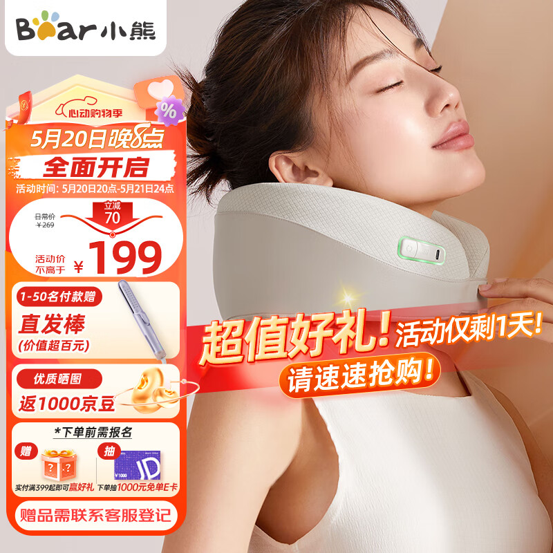 小熊(Bear)颈椎按摩器 颈部按摩仪颈椎肩颈按摩枕U型枕 热敷旅行便携礼盒装 520礼物送男朋友送女友AMQ-F03C5价格:269.00元!