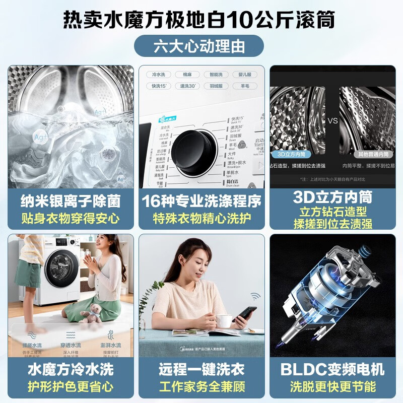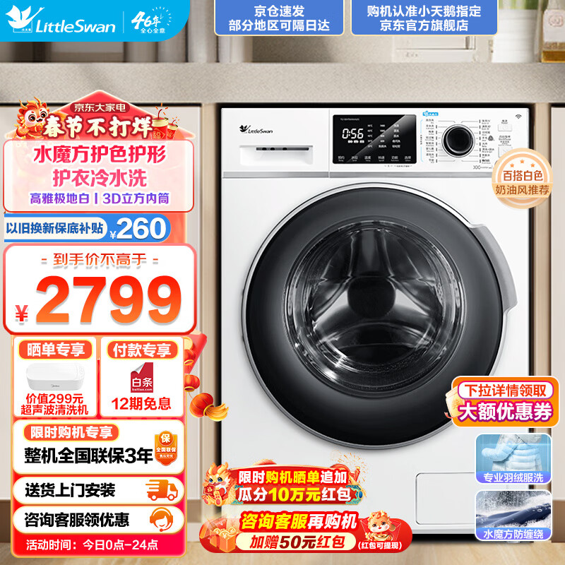 小天鹅(LittleSwan)滚筒洗衣机全自动 10公斤家用大容量水魔方防缠绕护形护色变频除菌智能家电白色TG100VT86WMAD5价格:2799.00元!