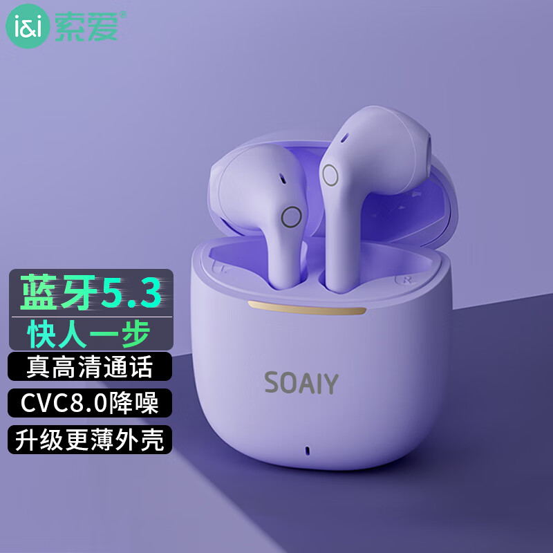 索爱(soaiy)SL3真无线蓝牙耳机运动商务游戏长续航防水半入耳式蓝牙5.3适用于苹果小米华为手机通用香芋紫 价格:219.00元!