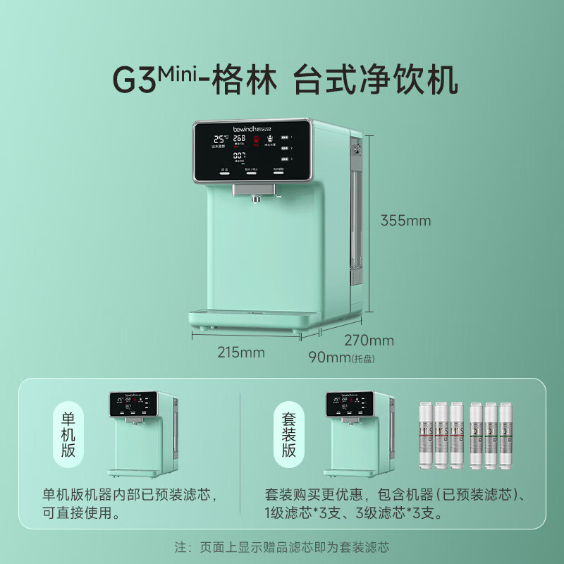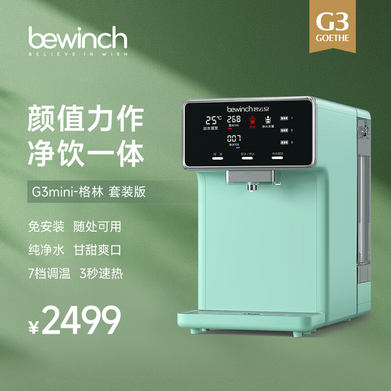 碧云泉G3家用智能直饮水器加热净化RO反渗透过滤自来水一体机免安装茶吧机杀菌卧室客厅小型便携 G3mini-格林:套装版价格:3499.00元!
