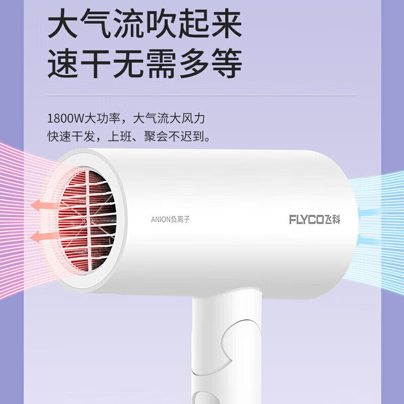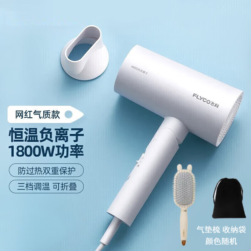 飞科(FLYCO)电吹风家用大功率吹风筒旅行负离子吹风机冷热风理发店发廊FH6276+收纳袋+气垫梳价格:139.00元!