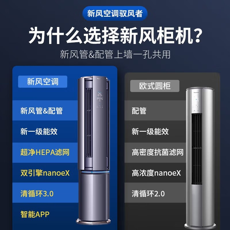 松下新一级能效 3匹驭风者新风空调 圆柱式空调柜机 11米远距送风 除菌自清洁 以旧换新 J27FQ10A价格:22608.00元!