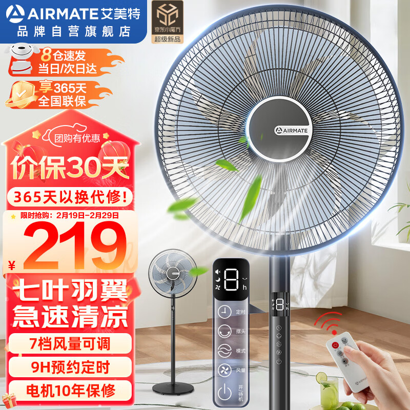艾美特(AIRMATE)七叶7档家用遥控电风扇大风量空气循环摇头立式落地扇学生宿舍节能风扇轻音柔风定时落地式风扇 FS35-R69(7叶遥控升级款)黑色价格:249.00元!