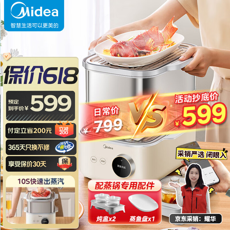 美的(Midea)锁嫩舱2.0电蒸锅 蒸炖锅11.6L 隔水炖 智能蒸汽烹饪智能云操作家用多用途锅MZ-ZGS302002价格:599.00元!