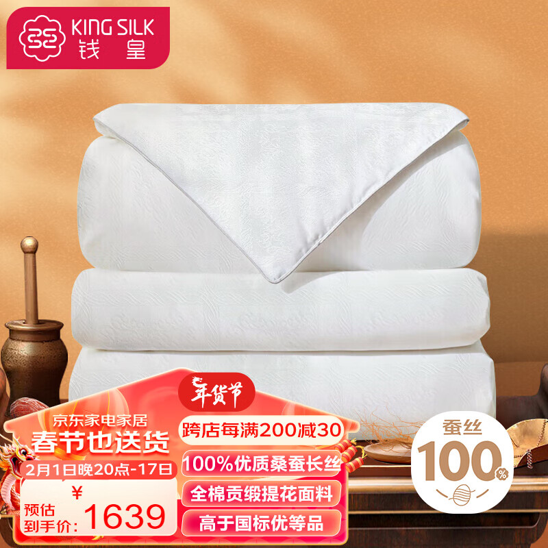 钱皇【步步生莲蚕丝被】100%桑蚕丝子母被 被重4+6斤220*240cm【白】价格:2499.00元!