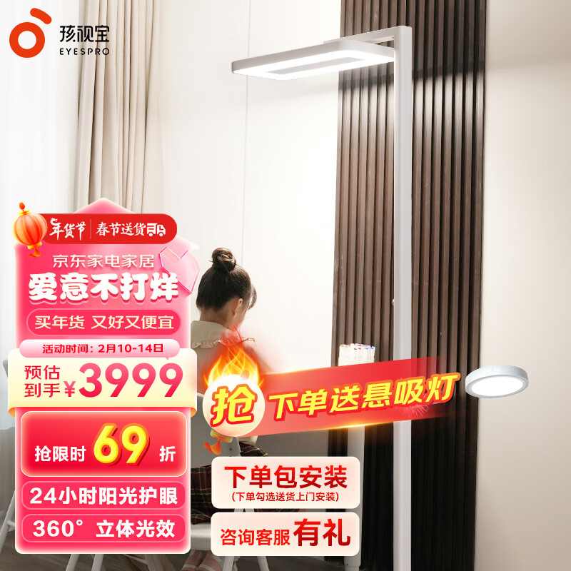 孩视宝红光学生护眼台灯立式LED全光谱落地学习灯儿童阅读灯 E5-130W-R价格:5799.00元!