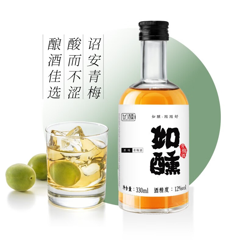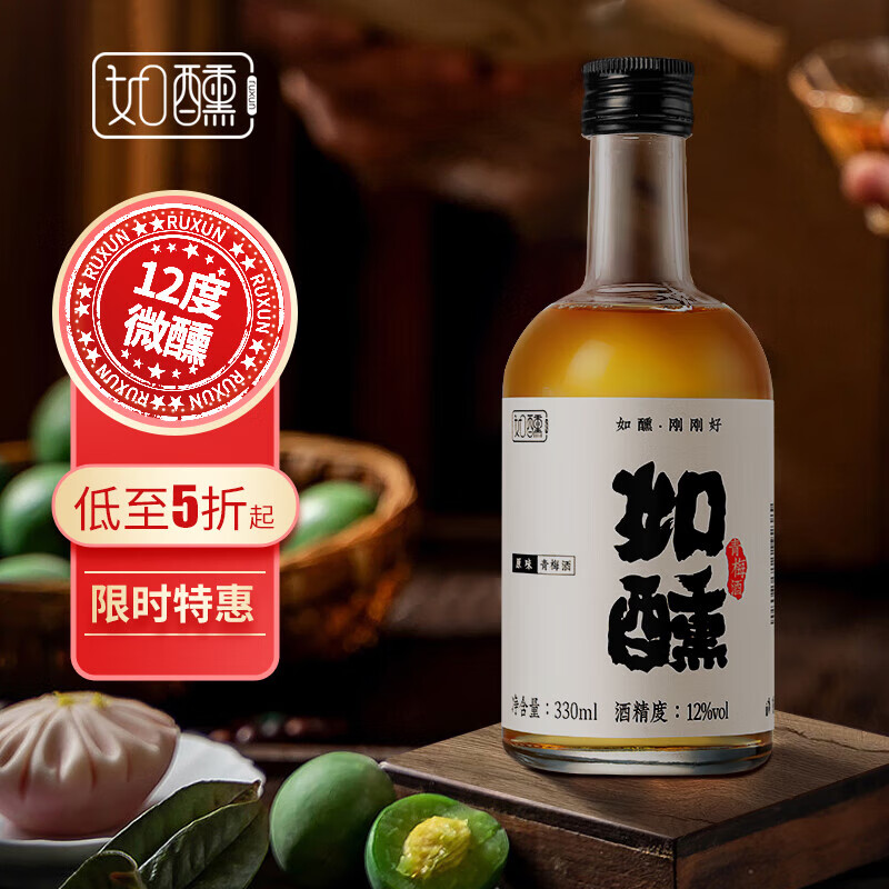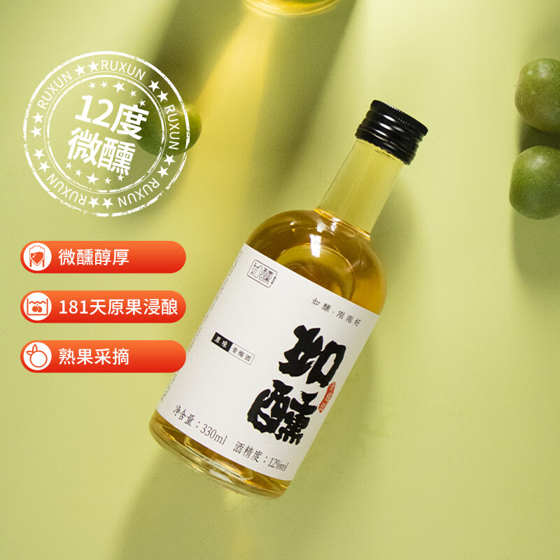 如醺(RUXUN)青梅酒 12度 330ml*1 瓶装 低度微醺果酒梅子酒 居家聚会休闲饮品价格:26.00元!