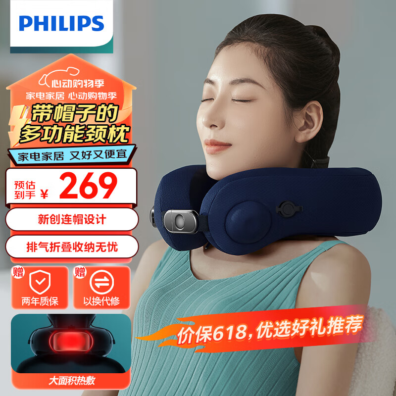 飞利浦(PHILIPS)充气式U型枕午睡枕头睡眠颈椎枕专用 热敷护颈枕 肩颈按摩器颈部按摩仪按摩枕头 3101N价格:259.00元!
