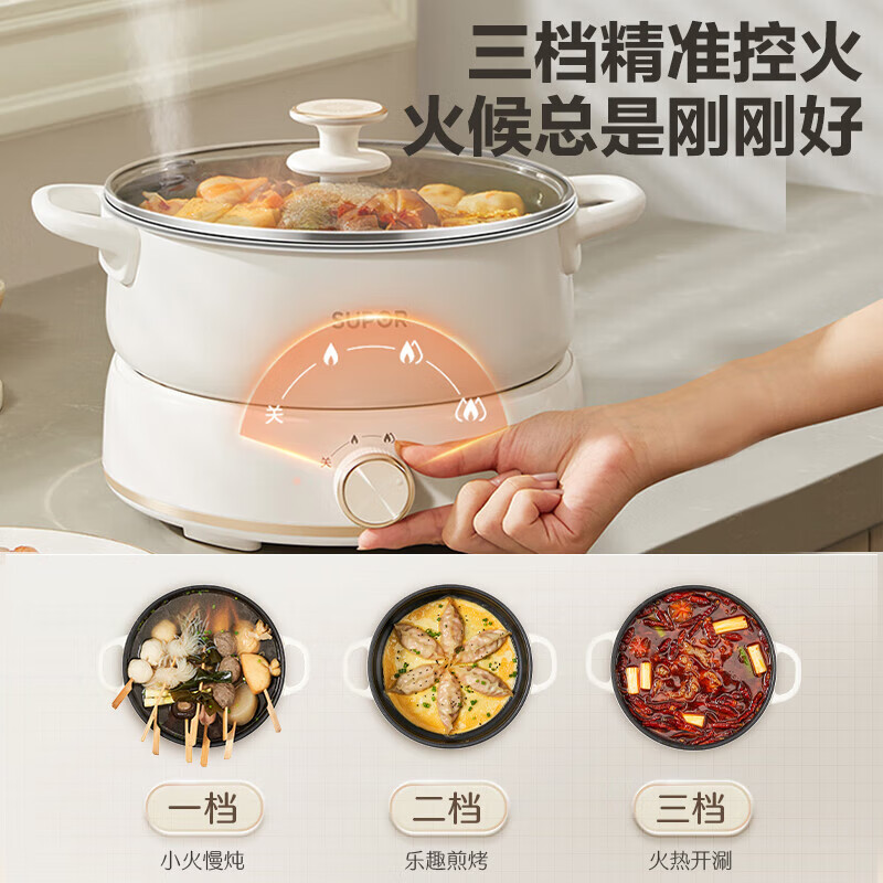 苏泊尔(SUPOR)电火锅 多功能电煮锅 火锅专用锅 分体式家用电热锅 3升多用途锅H22YK855价格:759.00元!