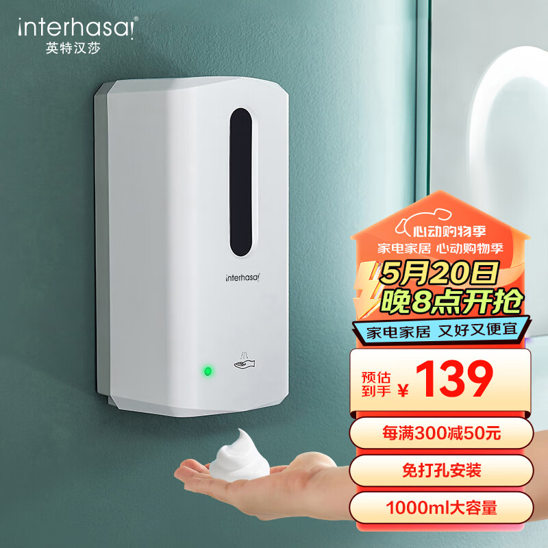 英特汉莎(interhasa!)F9313 自动洗手液机感应洗手液器壁挂式泡沫电动洗手机感应皂液器价格:139.00元!